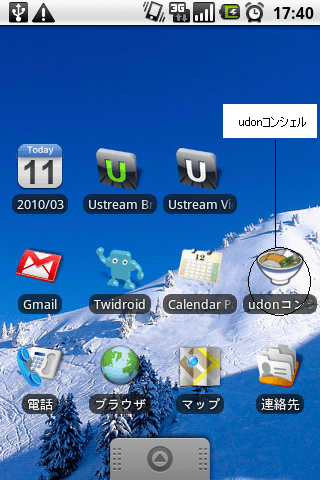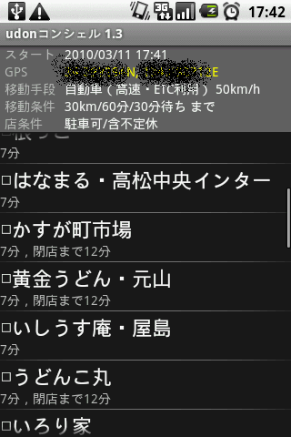 さて、先日「日本アンドロイドの会女子部」andronjoの紹介をさせていただきましたが、blogで「うどんコンシェル」のアプリの紹介をされていました。1.1からバージョンアップをして、1.3になっているのですが、作者の方からもコメントがついていますように、ご当地でないと使えない様子でしたので、実はご当地にいるので、使ってみる事にいたしました。
