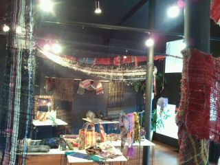 昨日はめずらしく女性らしいものをたくさん購入しました。私の住んでいる町でマフラー展があるとうかがい、手作りのマフラー100点を展示即売されていらっしゃるということで、とてもワクワクして行きました。さをり織りアーティストの松浦まきさんご本人が、なんと展示場で作品を作っていらっしゃいました。